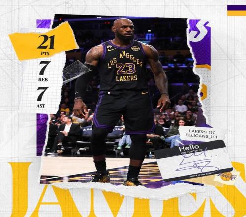 詹姆斯末节得到了3分1板3助攻2盖帽,他在第4节依靠着传球和防守帮助湖人笑到了最后。据统计,这是詹姆斯第966场比赛至少20分5板5助,历史断档第一,大O奥斯卡罗伯特森613场位居第二。