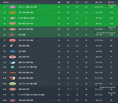 - 德甲第6轮所有比赛结束,最新积分榜如下!